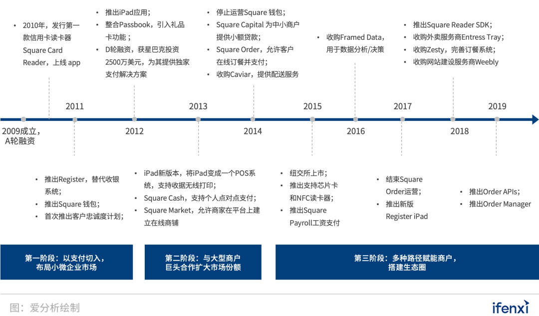 同年,Square花费1亿美元收购美国订餐网站Caviar,并允许商家在平台上建立商铺,以吸引从来没用过Square读卡器的商户。这标志着Square发展的另一结点,其业务方向和发展路径发生了再一次调整。