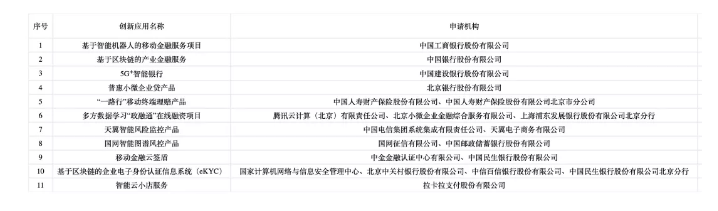 此次试点应用涉及国有大行、全国性股份制商业银行、大型城市商业银行、支付机构、保险、科技公司等多家机构,主要聚焦大数据、人工智能、区块链等前沿技术在金融领域的应用,涵盖数字金融等多个应用场景。