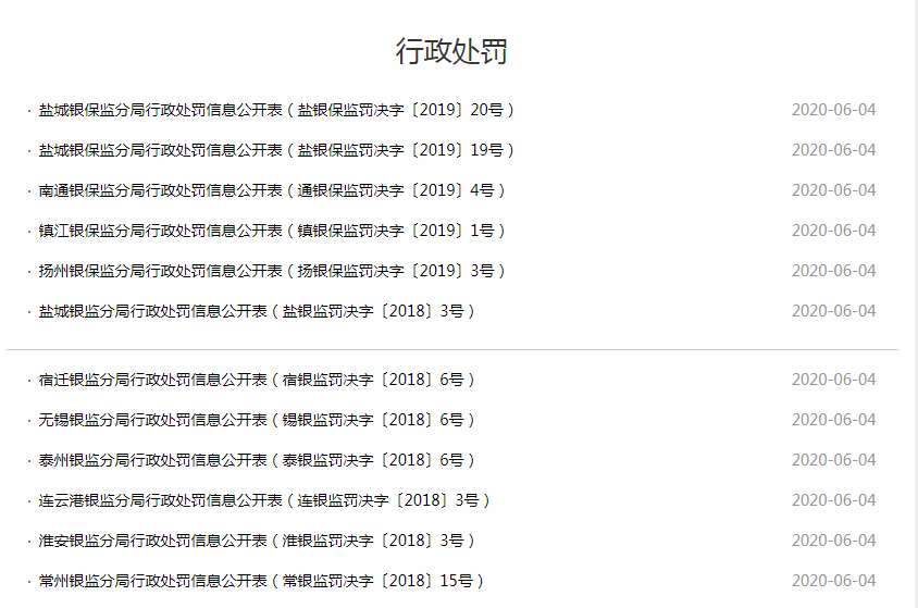 据统计,10家分行:常州分行、淮安分行、连云港分行、泰州分行、无锡分行、宿迁分行、盐城分行、扬州分行、镇江分行和南通分行。1张罚单处罚对象是个人,受处罚人员为扬州分行负责人。