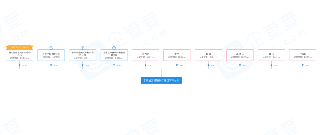 经警方调查后,这场天价骗贷案件背后的关键人物出现,即晋州恒升村镇银行的股东赵某。工商信息显示,赵某为晋州恒升村镇银行自然人股东,持股5%;温州瓯海农商行为晋州恒升村镇银行第一大股东,持股40%。