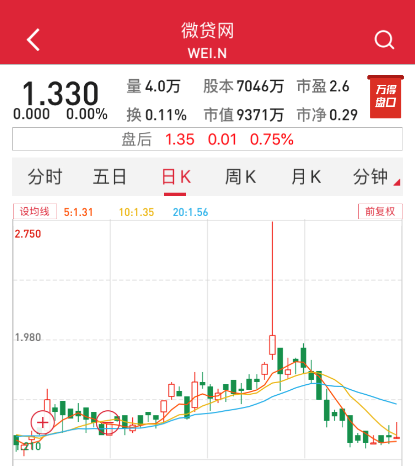 而目前的微贷网市值不到1亿美元,其股价仅剩下1.33美元/股,距最高点已经跌去近90%。股价下跌的背后,公司业绩不断下滑。财报显示,微贷网2019年净营收为33.58亿元,同比下降14.2%;全年净利润2.63亿元,同比下降56.46%。
