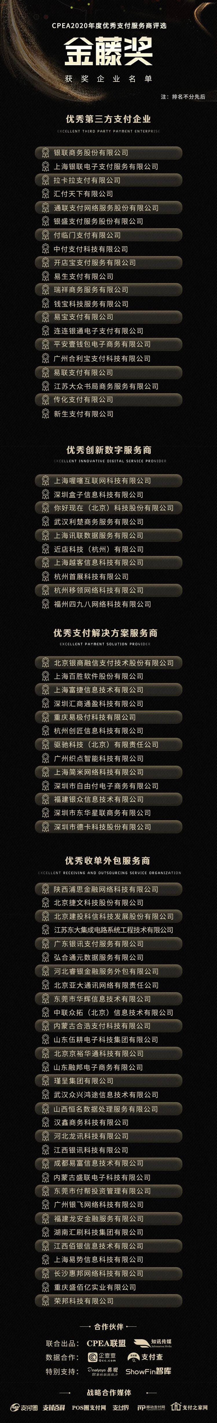 CPEA2020优秀支付服务商“金藤奖”获奖名单正式揭晓!