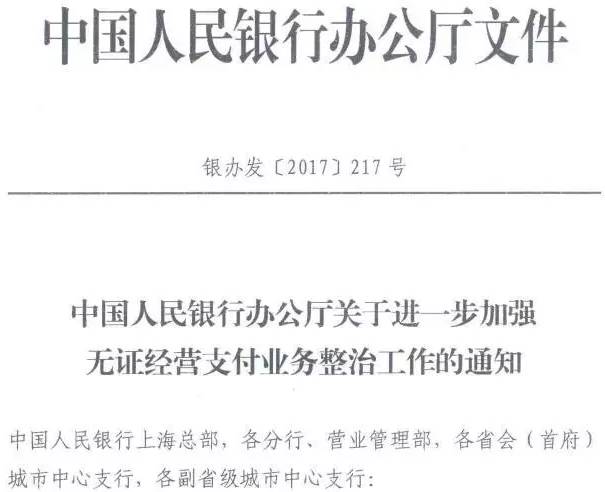 早在2017年12月,央行下发了《关于进一步加强无证经营支付业务整治工作的通知》,“剑指”无证支付机构和支付“二清”行为,银行、银联、第三方支付机构、各地清算中心都被列为了重点检查对象。