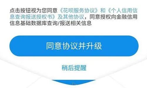支付百科咨询支付宝客服后,得到的答复是:用户同意花呗升级服务后,花呗用户的基本信息、花呗额度、月账单总额及还款情况等信息将上报央行征信系统。