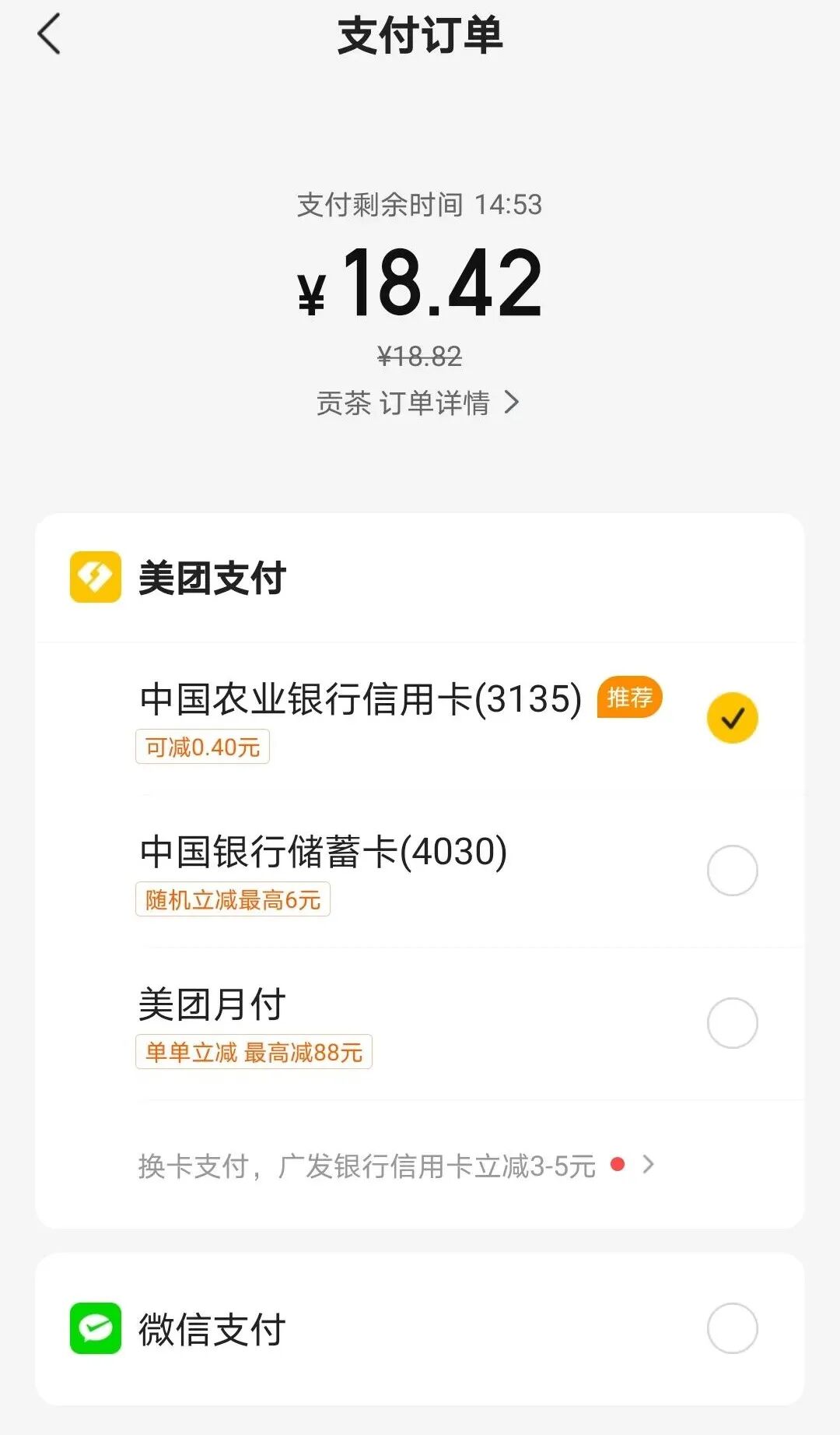 根据付款页面显示,美团月付及银行卡支付成为优先项,占据最前端的位置,随后为微信支付及Apple Pay支付。此次取消支付宝支付,意味着美团与支付宝的大战全面升级。