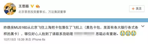 此外,“国民老公”王思聪2015年在微博上自曝乘坐飞机时不慎遗失卡包,“里面有各大银行各式各样的黑卡”。网上有消息称,王思聪确实是百夫长黑金卡会员。