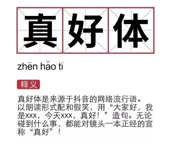 讲述无奈、丧气的事,最后配上假笑和“真好”,以此来表示对生活的无奈。即使遇到再糟心的事儿,也要保持围笑,乐观的面对操蛋的工作,“真好体”实在是太适合银行人了。