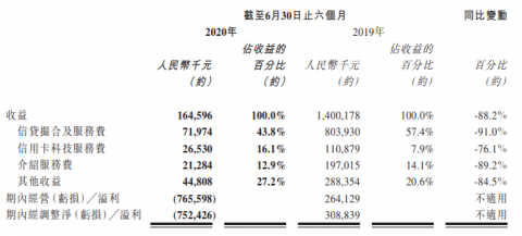 财报显示,截至2020年6月30日止六个月内,51信用卡实现营收1.65亿元,同比下降约88.2%;经营亏损约7.66亿元,而2019年同期的经营溢利约2.64亿元;经调整净亏损约7.52亿元,而2019年同期的经调整净溢利约3.09亿元。