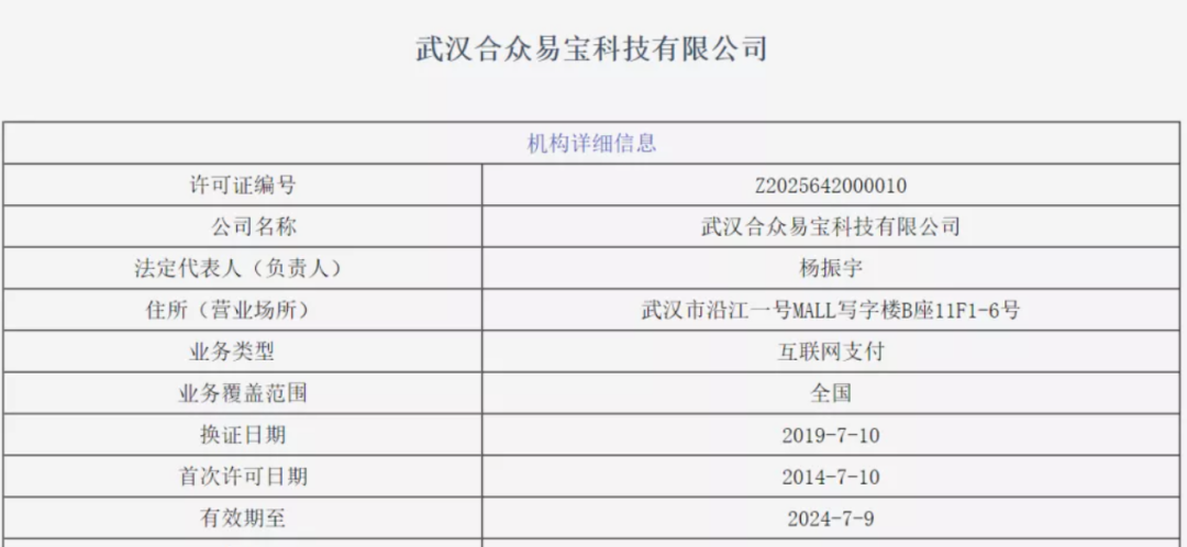 武汉合众易宝在业内一直比较低调。公开资料显示,武汉合众易宝科技有限公司成立于2012年,注册资本金1.5亿元人民币,此前由中发实业集团全资控股。在2014年获得由中国人民银行颁发的《支付业务许可证》,成为湖北省首家持牌互联网支付企业。