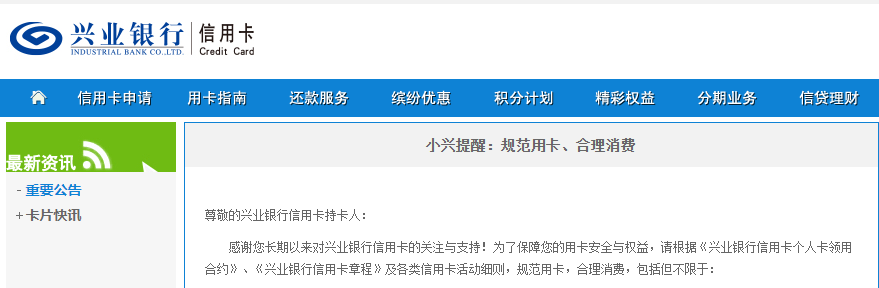 近日,「支付百科」注意到,又有一家银行发布规范信用卡使用的通知,兴业银行发文提醒持卡人合理消费。