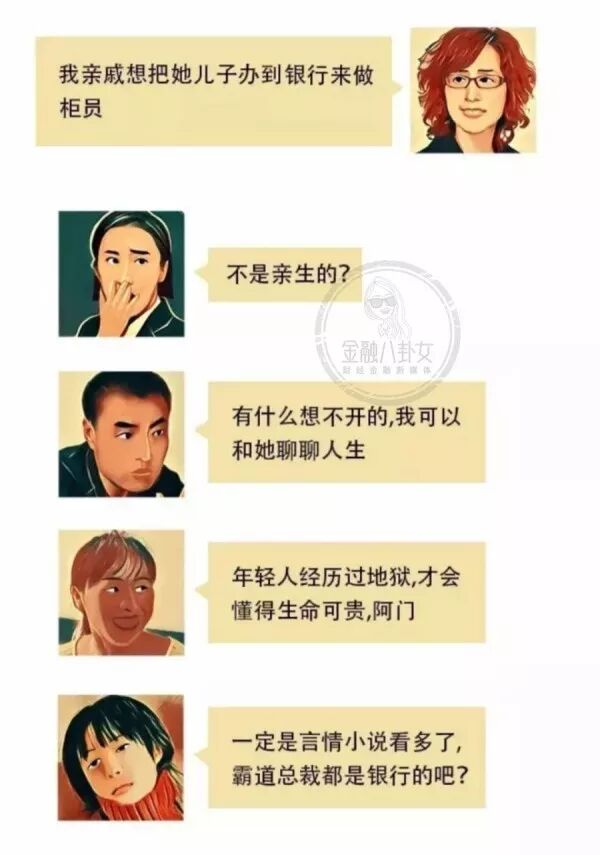 没想到,作为一个读金融的应届生,亲戚的儿子一句话就怼回来了:做柜员的前途,是银行行长呢,你信不信?