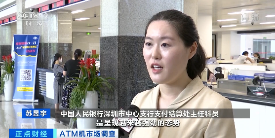 中国人民银行深圳市中心支行支付结算处主任科员 苏昱宇:根据深圳人行的统计口径来看,深圳电子支付业务呈现越来越强劲的态势,以今年上半年为例,深圳电子支付金额已经达到了89.43万亿元,同比增长16%,其中通过ATM机交易的笔数和金额呈现逐年下降的趋势,笔数较去年同期下降48%,金额较去年同期下降36%。