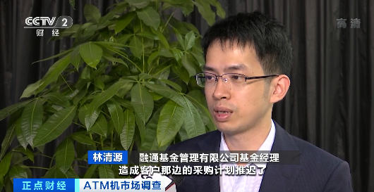 融通基金管理有限公司基金经理 林清源:一方面是因为疫情造成客户的采购计划推迟,因为上半年第一季度银行的采购计划没有完全铺展开,第二个原因是ATM制造行业整体不景气,事实上在前几年ATM行业已经看出增速在放缓,今年可能数据更差,我觉得ATM整个行业的天花板现在已经可以非常明显地看到了。