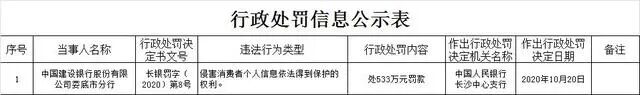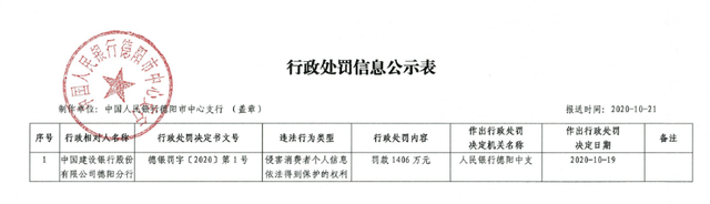 三、中国建设银行股份有限公司德阳分行、东营分行和娄底市分行存在侵害消费者个人信息依法得到保护的权利的违法行为,分别对其处罚款1406万元、514万元和533万元。(建设银行建德支行信息暂未公示)
