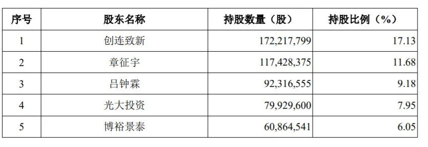 目前,持有公司股份比例5%以上的主要股东为章征宇、吕钟霖、创连致新、光大投资、博裕景泰以及红杉臻盛。