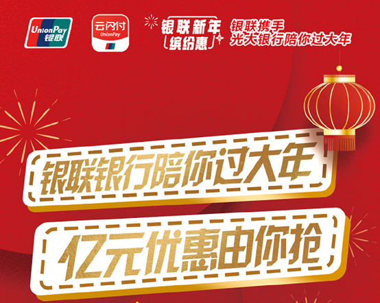 在农历新年之前, “银联银行陪你过大年,亿元优惠由你抢”活动刷屏,催生出一个与往年截然相反的消费热潮,广大消费者纷纷参与到银联的优惠活动中来。