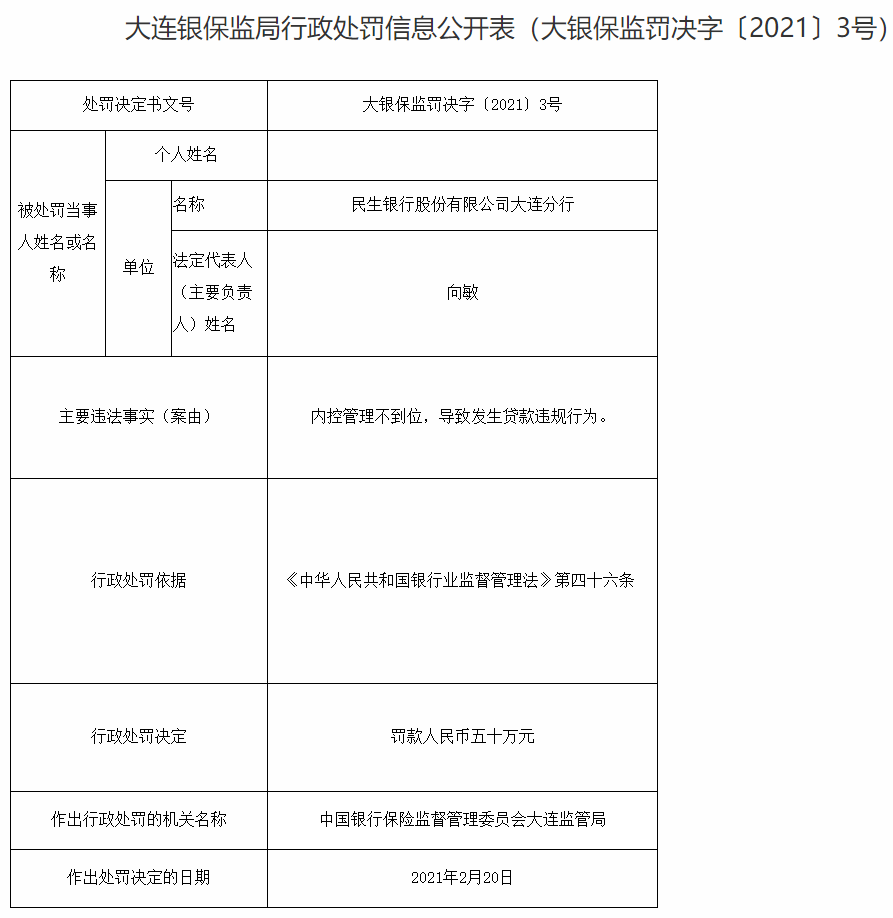 民生银行因贷款违规等问题被罚100万 小百 • 2021-03-01 支付图文 据大连银保监局行政处罚信息显示,民生银行大连分行一天连接两罚单,因贷款违规等问题合计被罚100万。具体为:因内控管理不到位,导致发生贷款违规行为,对民生银行大连分行罚款人民币五十万元;因个人经营性贷款贷后管理不到位,部分贷款资金流入客户经理他行账户,对民生银行大连分行予以罚款人民币五十万元并对张超洋个人予以警告。中国银行保险监督管理委员会大连监管局于2021年2月20日作出上述处罚决定。 合作/客服微信:baike2999 ▼进群加微信:baike2888 点击下方卡片关注支付百科 编辑:小百,转载请注明出处:https://www.paybaike.com/?p=3552 0 扫一扫,分享到微信 猜你喜欢 未央今日播报:“固收+”基金迎监管新规范 支付宝公布小微商家降费进展 支付宝、微信、百度的小程序新逻辑 金融数字化转型案例:基于可信执行环境的移动支付创新应用