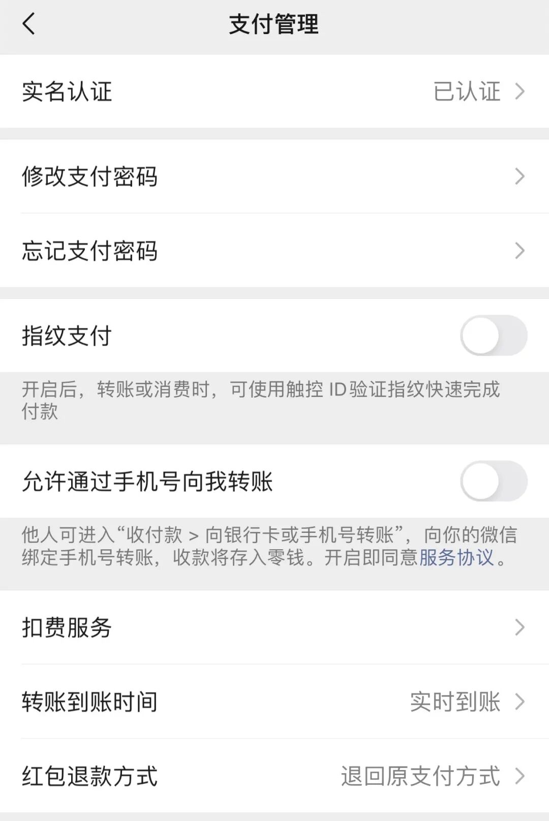 打开微信APP,从「我的」界面进入「支付」界面,点击右上角「。。。」便可打开「支付管理」页,在此页面下方更改「转账到账时间」,便可设置“延迟转账”。