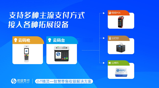 银盛支付小Y精灵围绕云码枪/云码台打造轻量级智慧零售(收银)解决方案,解决中小微零售商户在技术薄弱、资金不足、效率低下、管理落后等诸多经营难题。