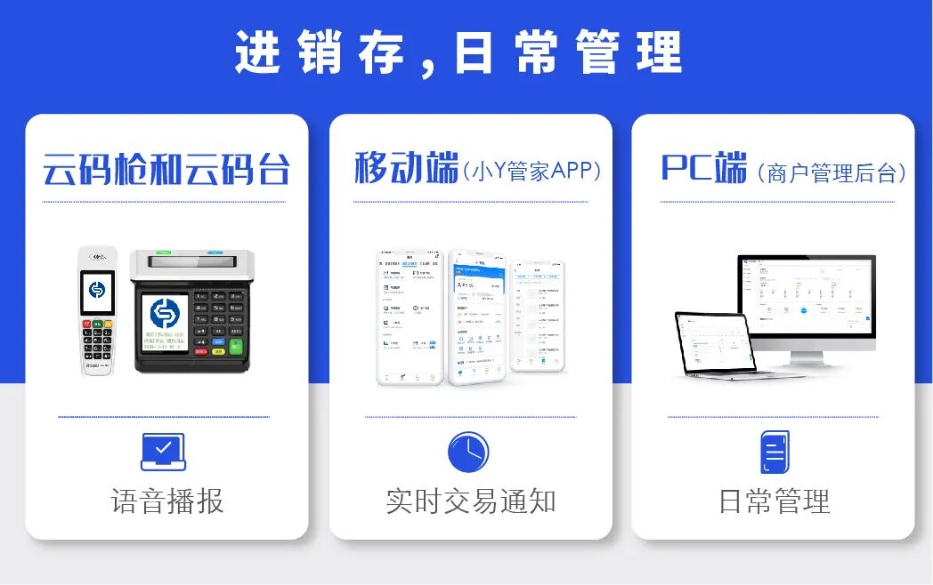 移动管理服务是银盛支付小Y精灵的另一大特色亮点。移动端+PC端管理后台,实现门店精细化管理,随时随地掌握经营信息,快速提高经营效能。