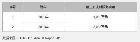 -哔哩哔哩2019年财报第三方支付费用数据-