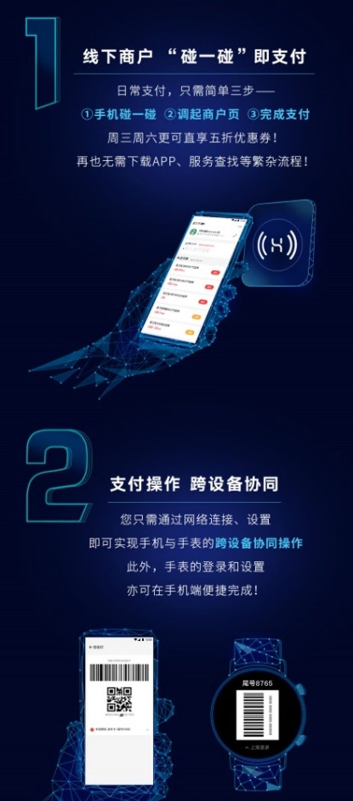消费支付应用:基于鸿蒙面向万物互联时代的全场景分布式操作系统,可以使用一个账号跨设备协同登录、设置,设备之间无缝衔接,不管是手机还是手表等终端设备,都能直接进行支付,让用户获得万物互联的顺滑体验。