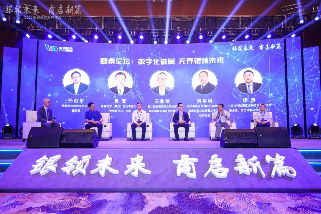 为契合各行业客户对企业数字化转型升级的诉求,会议特别设置了以“数字化破局 无界引领未来”为主题的圆桌论坛,新疆友好(集团)股份有限公司党委副书记、总裁勇军、香江控股集团商业事业部副总裁兼大湾区总经理王黎明、步步高商业连锁股份有限公司集团税务总监兼置业子公司财务总监刘华明、中国社科院国家金融与发展实验室副主任杨涛及银联商务副总裁孙战平,就“支付”在企业数字化转型中的作用、成功模式或案例及未来的发展方向进行深入研讨。会议还邀请了荣耀终端有限公司资金管理部总监王平、红星美凯龙集团清算中心总经理吴平分享了其通过与银联商务的创新合作实践,在企业降本增效、提升客流、增加销售等方面取得的现实成效。