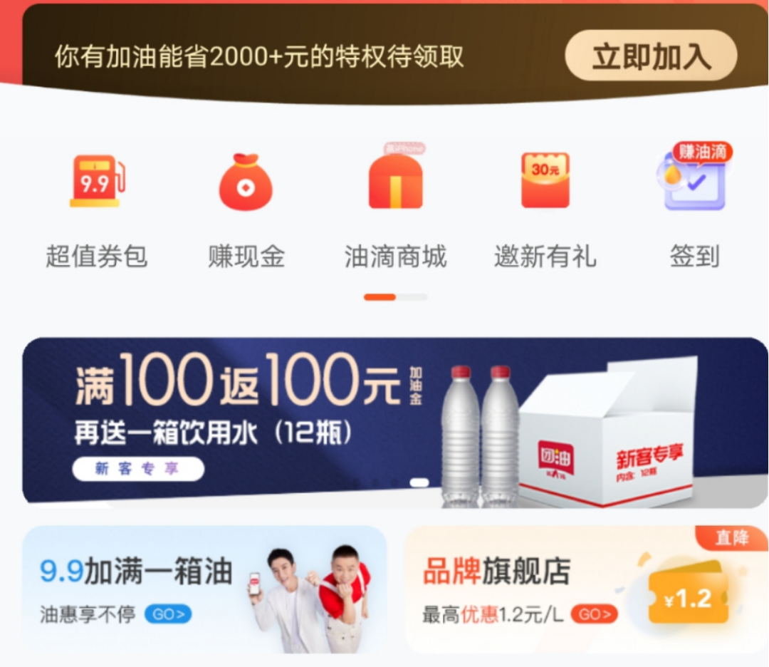 团油APP页面上,“9.9加满一箱油”、“加油5折起”、“32元低价抢红包”,“邀请好友得90元加油券”等优惠措施不断传递出“省钱”理念,让人眼花缭乱。