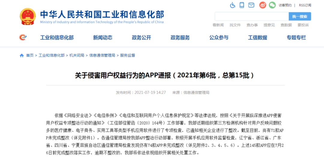 工信部表示,此批未完成整改App应在7月26日前完成整改落实工作,逾期不整改的将依法依规组织开展相关处置工作。