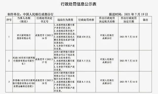 不仅如此,今年7月,新网银行更是收到一张破民营银行最高罚款记录的罚单。