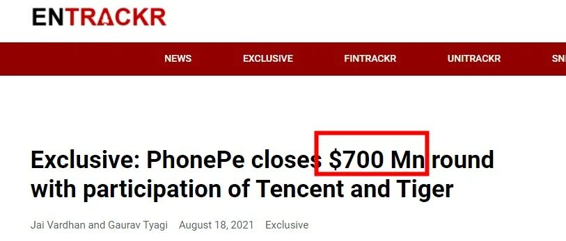 去年12月PhonePe宣布募集7亿美元融资计划后,就已获得了第一批融资。今年腾讯参投的融资正是之前计划中的第二部分。