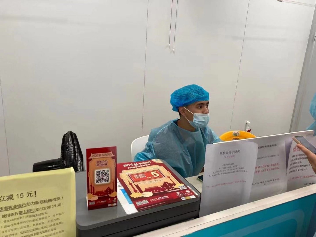 “付款可以用我们澳门本地电子钱包,在珠海这边做核酸还有优惠,做检测很方便,检测结果会发到手机上来,下次进来就可以直接使用了。”