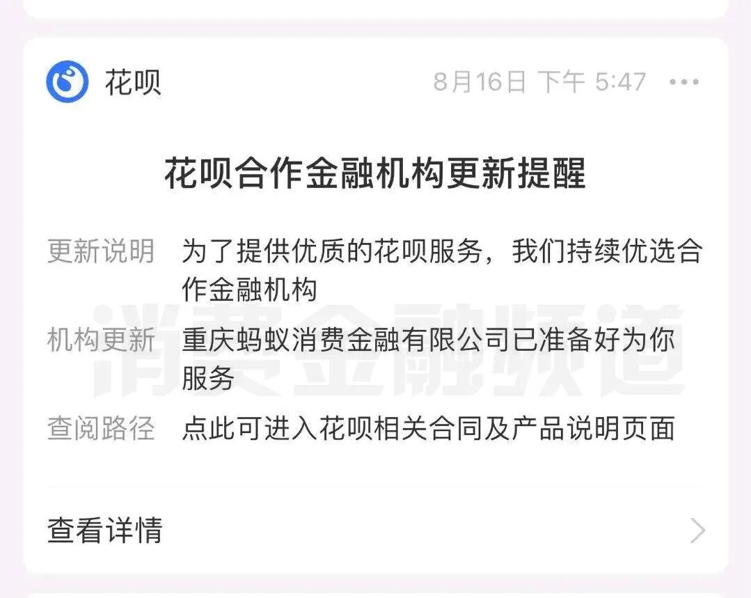 「支付百科」获悉,自六月份以来蚂蚁消费金融开始介入花呗服务,正式进入花呗合作金融机构名单。多名花呗用户透露,已经接到花呗合作金融机构更新提醒,由蚂蚁消费金融提供服务。