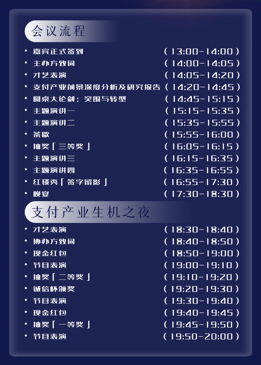 此次盛会将汇聚超百家服务商、数十家支付机构,共建繁荣生态。支付机构部分参会名单如:财付通支付、付临门支付、银盛支付、畅捷通支付、讯付科技、京东金融、乐刷支付、腾付通、富友支付、中付支付、瑞银信支付、钱宝科技、易生支付、合利宝支付、海科融通、拉卡拉支付、开店宝支付、易极付、易宝支付、通联支付、快钱支付、嘉联支付、随行付、讯联(华为)...