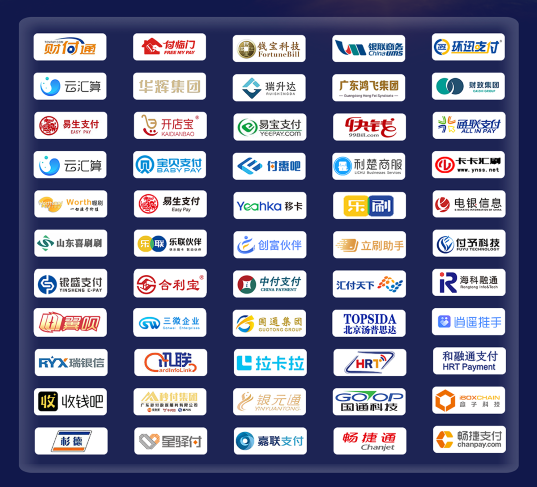 收单事业服务商如:华辉集团、盒子科技、汇友企业、深圳华深、宝贝支付、鸿飞集团、瑞升达、云汇算、百亿联盟、财致集团、卡卡汇刷、浙江国通集团、江苏牛哄哄、福建三微企业、收钱吧、浙江瑞富、利楚商服、银商融信、现在股份、天喻信息、浦思金融、江苏东大集成、浙江付予科技、山东全民富、翼呗科技、银讯科技、深圳德卡科技、河北睿银金融、武汉众兴宏图、福建探客猫、百胜软件、富捷信息、汇商通盈、上海汇尼信息、浙江卡联、北京捷文科技、招银迅捷、银商股份、中投科信、合浩支付、豪弘集团、河南熙银、江苏浩刚集团、山东新互联、北京汤普思达、浙江星鑫福建三通、广东联华...