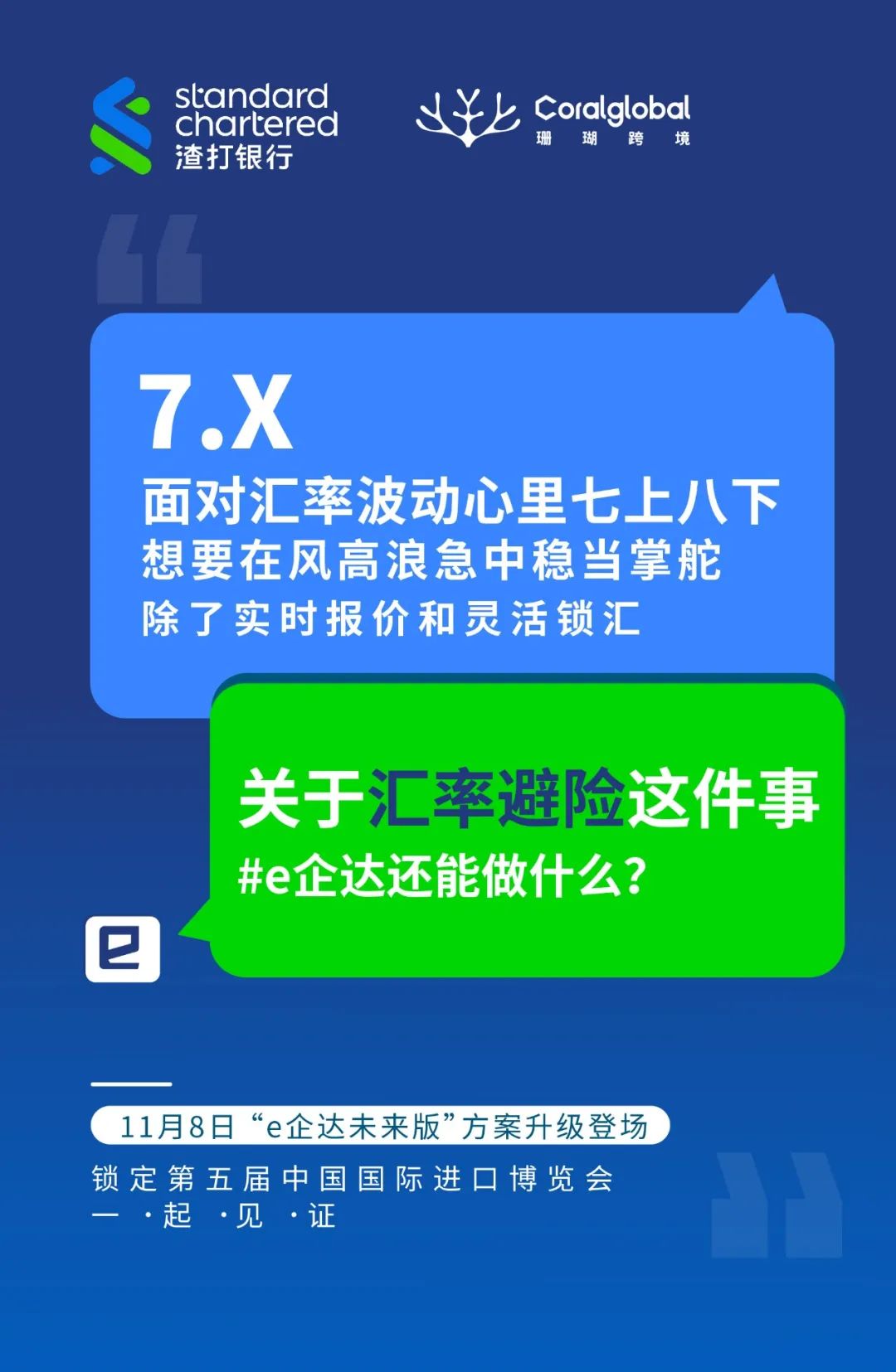 外汇市场波动是常态,汇率走势难以预测,e企达上线以来,坚持以创新促便利,支持提前上传资料,再进行锁汇,有效规避汇率波动风险。此次全新升级的“e企达·未来版”,针对外贸企业对外汇价格波动的担忧,开展更多汇率避险服务,避免因市场快速波动而造成的汇兑损失,让外贸企业可持续地稳健经营。