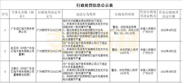 作为最早一批的持牌机构,近年来广东信汇却频频陷入经营危机当中。央行去年4月份发布的处罚信息显示,广东信汇因四项违规被警告,加上高管处罚,合计罚没886万元。在此之前,广东信汇曾因存在违规接入博彩类等非法商户、变造交易信息、大商户模式等严重问题触碰监管红线,被监管通报。
