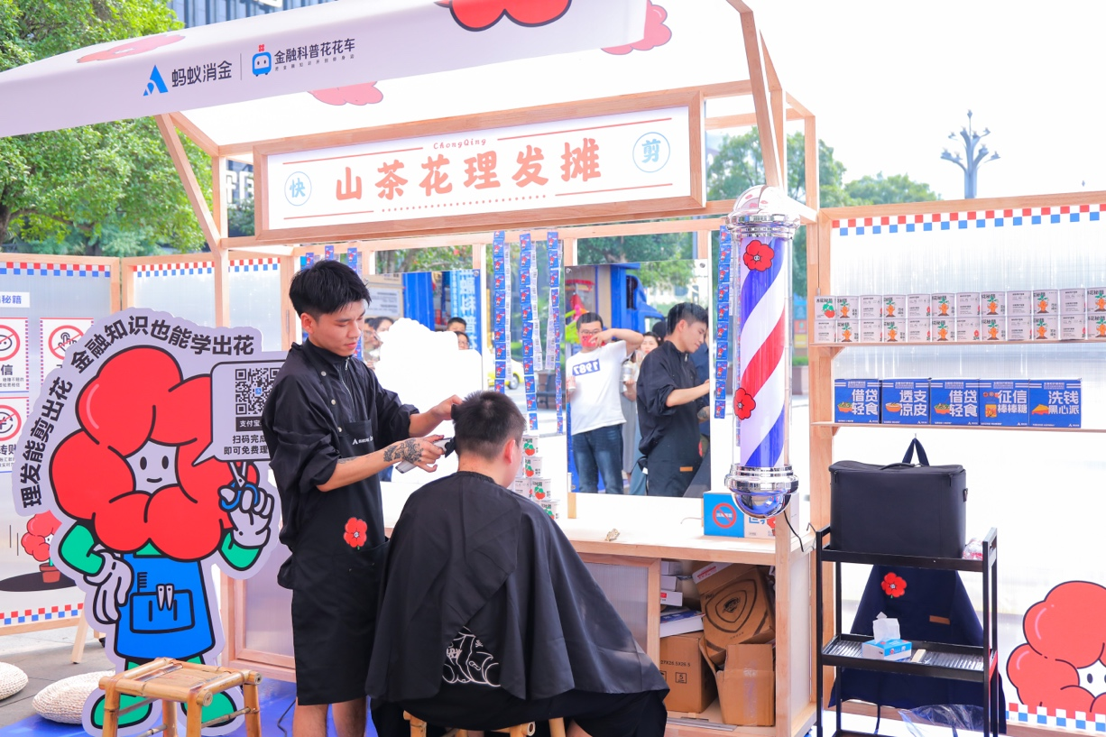 5月30日,一辆停放在南岸区海棠烟雨公园的变形花车,吸引了大量重庆市民驻足游玩。在这里可以逛市集、喝咖啡、剪头发,也可以参与游戏、答题互动,在游玩中轻松掌握金融科普知识。
