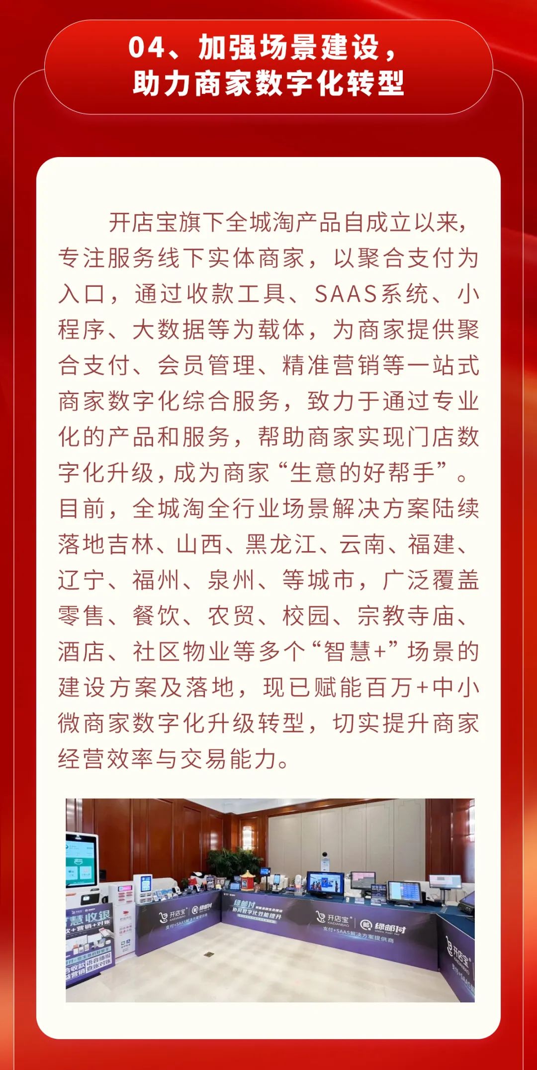 砥砺笃行向未来,筑梦扬帆启新章 | 开店宝2023年终回顾 小百 • 2024-01-08 未分类 编辑:小百,转载请注明出处:https://www.paybaike.com/?p=8125 0 扫一扫,分享到微信 猜你喜欢 警企联动,国通星驿构建多维度防范电销体系 中国电信翼支付推出“聚合支付”境外版服务,助力外籍人员便捷支付 “AI+客服”新变革,中国电信翼支付大模型驱动客户服务全流程智能化跃升 文章评论 电子邮件地址不会被公开。 必填项已用*标注 或 登录 后发表评论 取消回复